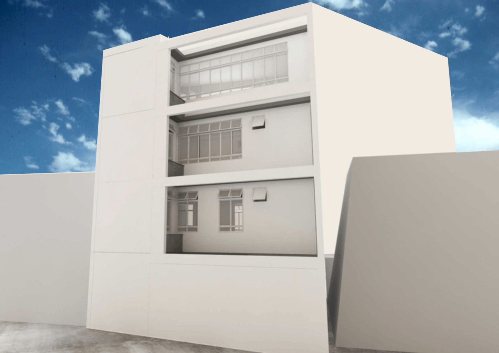 • Given the limited exposure on the left and right due to the firewalls, the design incorporates ample front-facing windows and rear windows, as well as skylights on the roof deck level, to allow natural light to penetrate deep into the living spaces. This enhances the sense of openness and reduces the need for artificial lighting during the day.