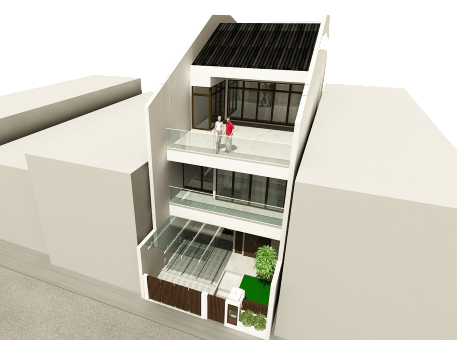 This 3-storey modern residence, designed on a 140-square-meter lot, combines innovative spatial planning with a focus on natural ventilation, light, and a connection to nature. The house features a sleek, minimalist design tailored for urban living, maximizing the available space while providing a comfortable environment for family life.